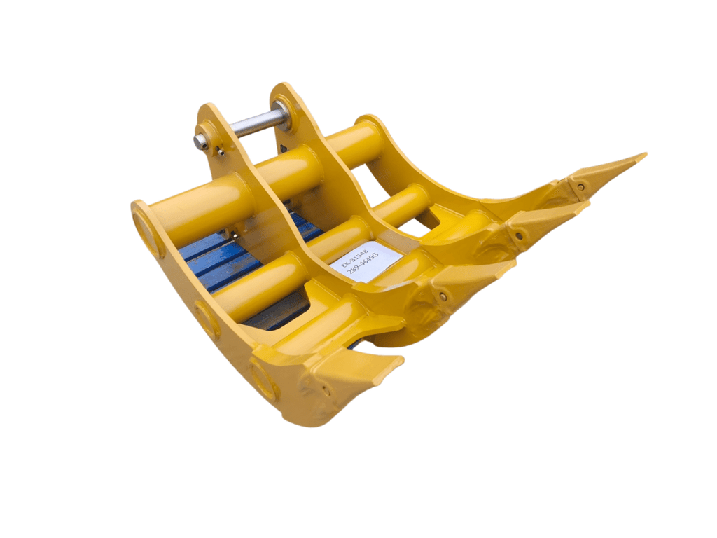 Excavator Rakes have a curved profile for efficient digging and screening of debris such as rocks and tree roots, making it possible to remove roots during site preparation. And it can cooperate with Thumbs to expand its processing functions. The rake with pointed tips, which can provide maximum penetration and stays sharp for extended wear life.