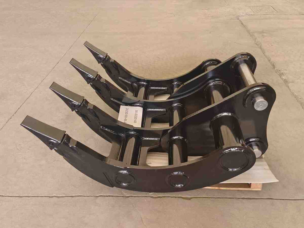 Excavator Rakes have a curved profile for efficient digging and screening of debris such as rocks and tree roots, making it possible to remove roots during site preparation. And it can cooperate with Thumbs to expand its processing functions. The rake with pointed tips, which can provide maximum penetration and stays sharp for extended wear life.