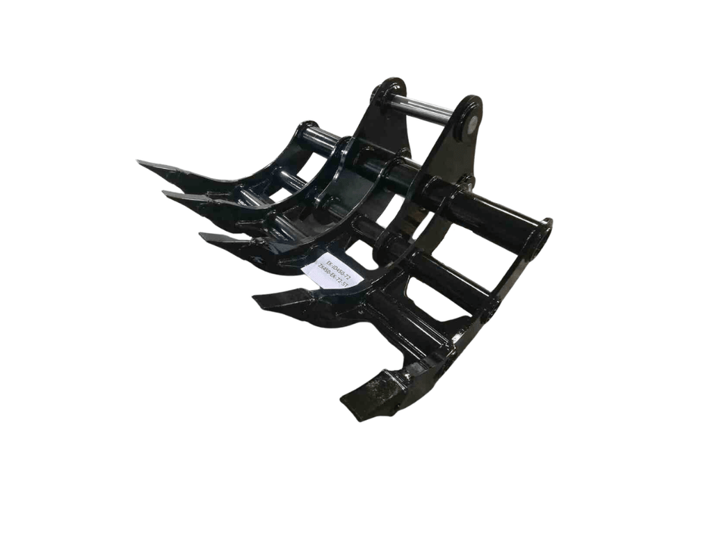 Excavator Rakes have a curved profile for efficient digging and screening of debris such as rocks and tree roots, making it possible to remove roots during site preparation. And it can cooperate with Thumbs to expand its processing functions. The rake with pointed tips, which can provide maximum penetration and stays sharp for extended wear life.